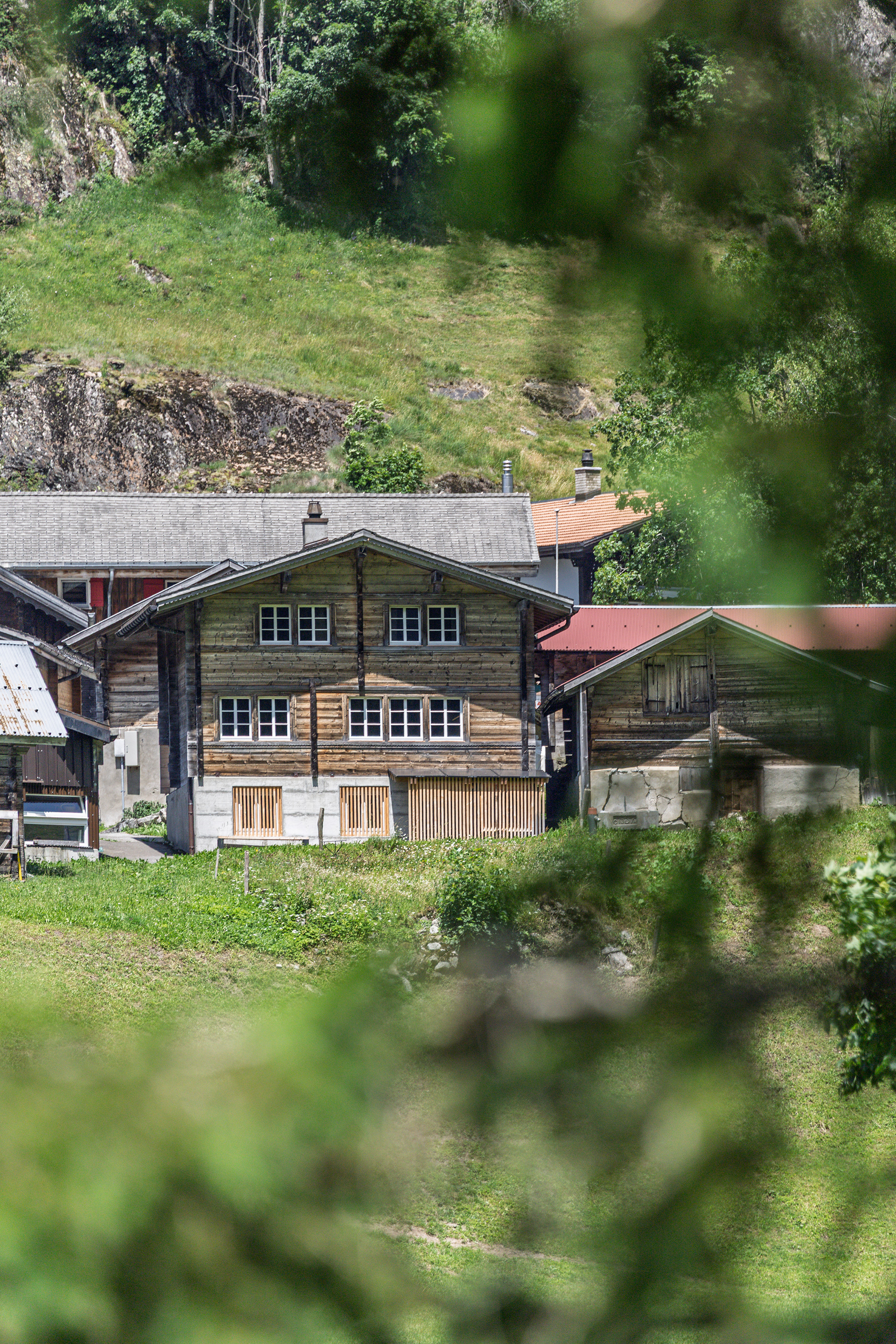 MKPHOTO, Architekturfotograf aus Aarau, Umgebautes Wohnhaus in Gadmen, Fassade mit altem Strick