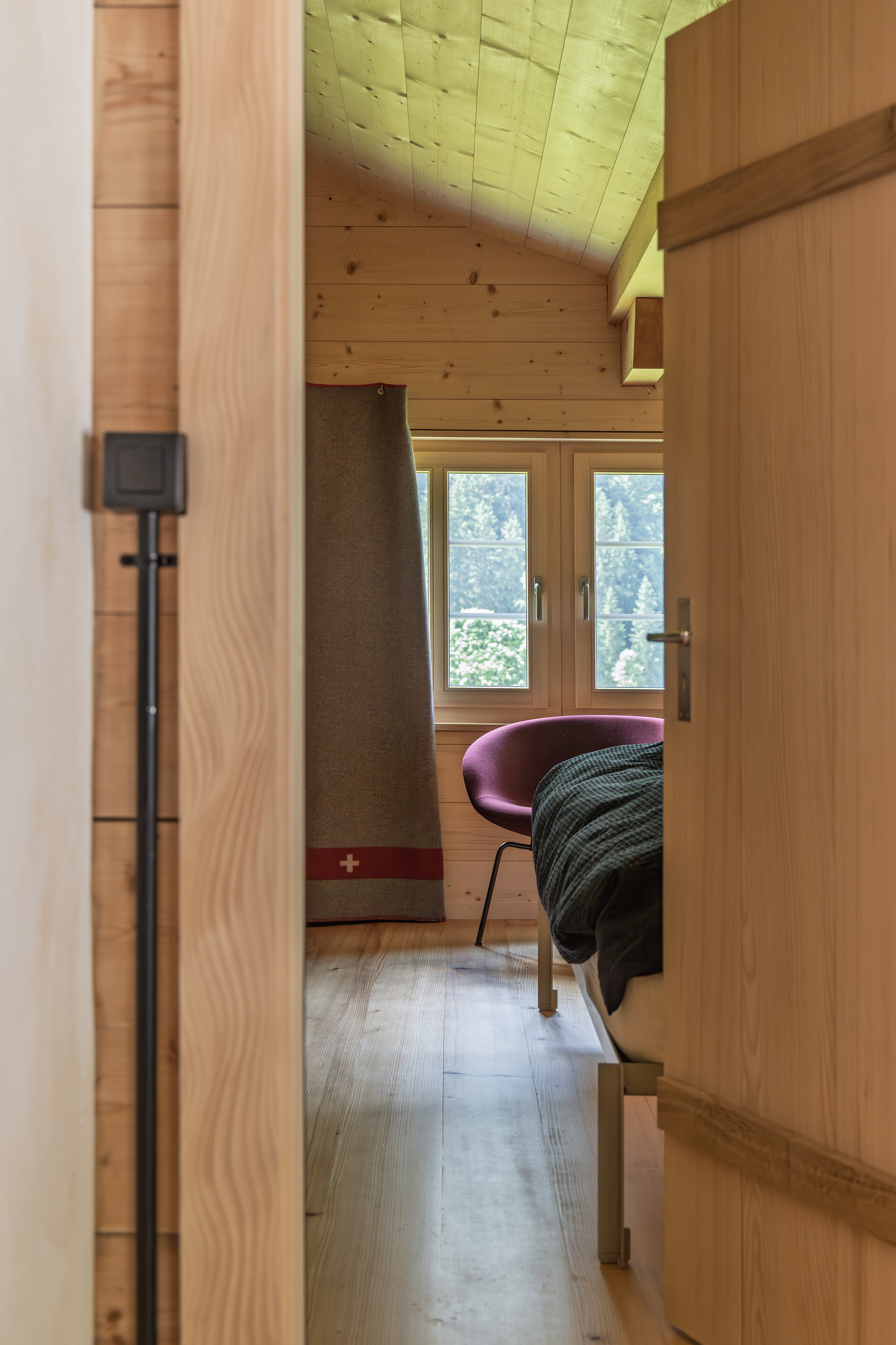 MKPHOTO, Architekturfotograf aus Aarau, Umgebautes Wohnhaus in Gadmen, Einblick in die Kammer mit neuem Wandtäfer